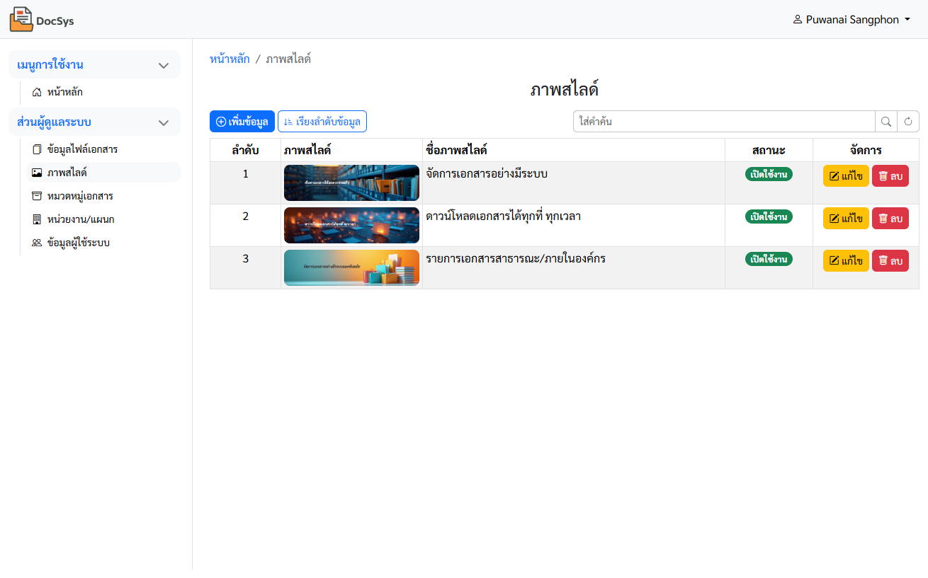 - ดาวน์โหลดที่ https://github.com/puwanai-s/DocSys
